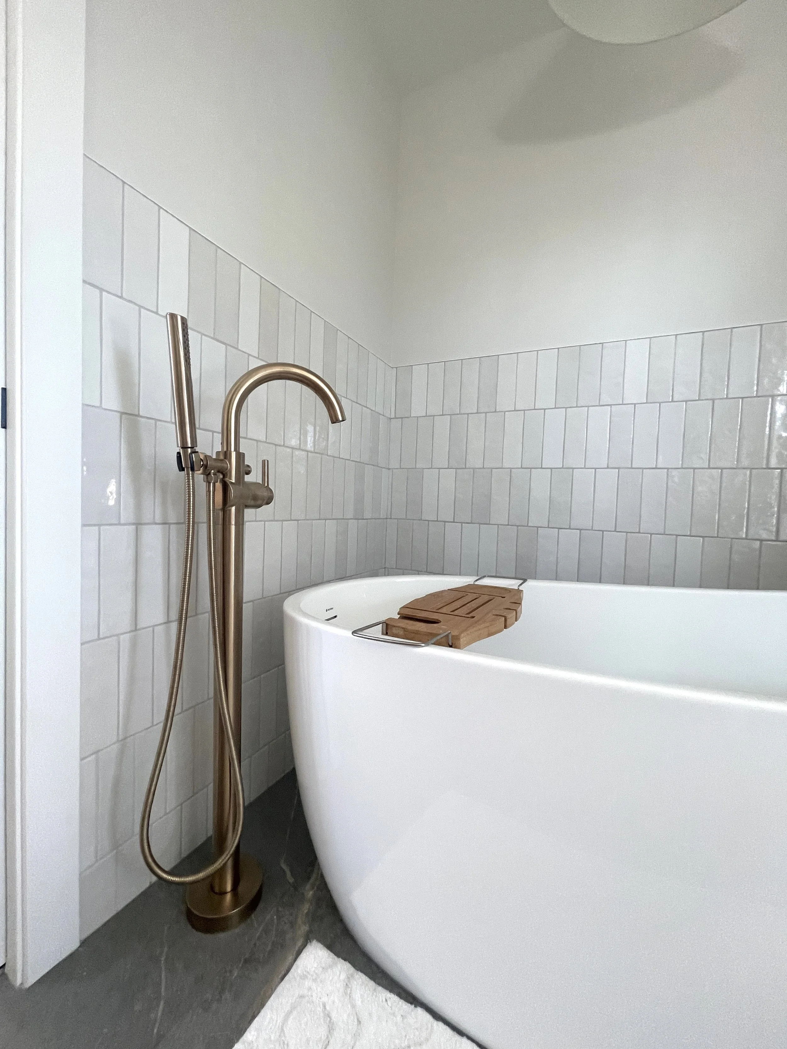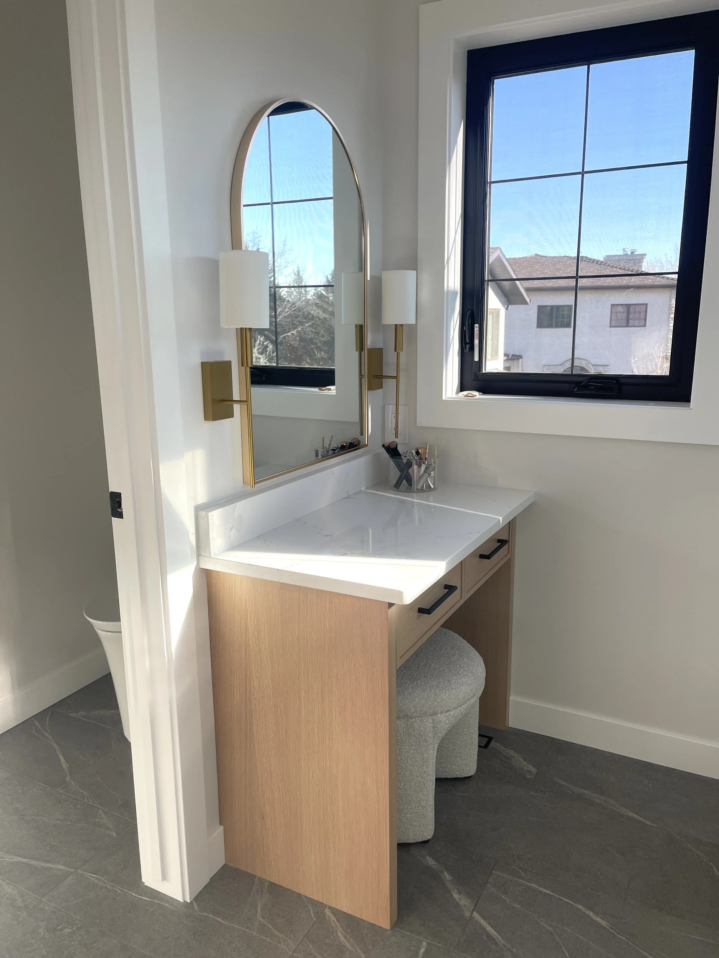 The Mews Bath Renovation reimagined a tired, carpeted bathroom into a luxurious, spa-like sanctuary. Guided by functionality and practicality, the redesign maximized natural light and introduced a thoughtful layout featuring a freestanding tub, oversized shower, private toilet room, and an expansive walk-in closet. The addition of a light-filled makeup vanity further elevated the sense of everyday indulgence.